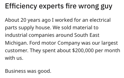 'Business went from $200k to zero': Efficiency experts fire the wrong guy and cost the company their biggest account