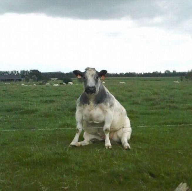 Just in case you haven't seen this before, this is what a cow sitting looks like. It is literally impossible for anything to be derpier than this, as our derpometer broke while trying to asses how derpy it actually is.