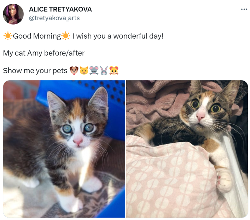 Cat - ALICE TRETYAKOVA @tretyakova_arts Good Morning I wish you a wonderful day! My cat Amy before/after Show me your pets ... BROT