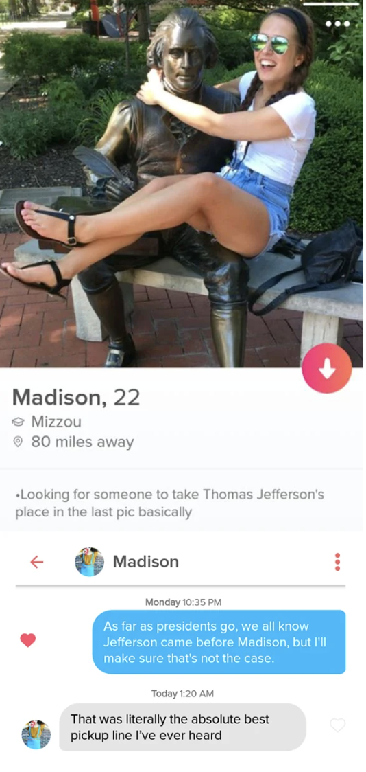 'In all silliness this man is trying to breed me for squarer jawed children by enticing me with long eyelashes before getting to know me at all. This feels bold and weird even for tinder'
