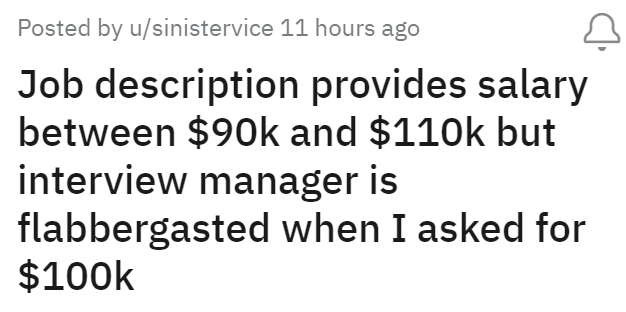 'The job listing read $110,000': Job candidate calls company out for refusing to pay the amount listed in job description, hiring manager denies salary expectations