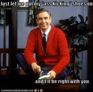 Just let me put my "ass kicking" shoes on and I'll be right with you.
