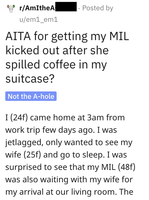 'My MIL stood horrified in the middle of our living room': Couple kicks MIL from their house after she ruins a suitcase