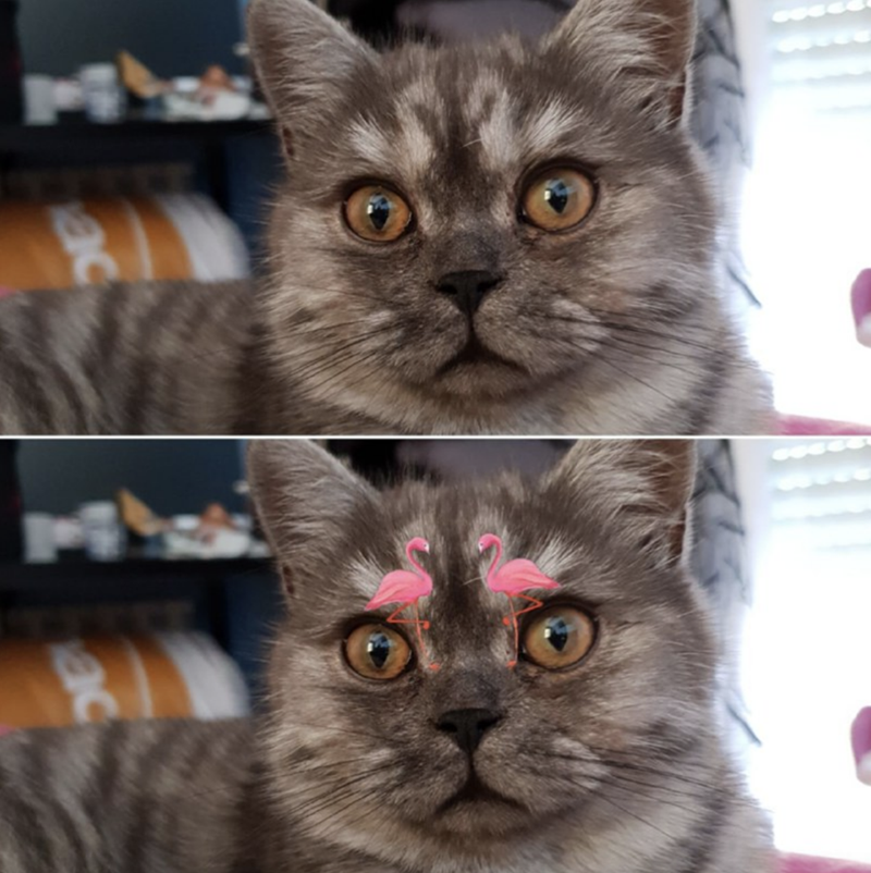 Wow! We can honestly say that we've never seen a cat with flamingo-shaped eyebrows before! Have you? What a cool birthmark. It's so clear and symmetrical, also. We want flamingo eyebrows!