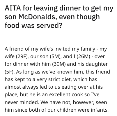 'I was gone for about 30 minutes': Dad gets put in his place for ditching dinner party to take son to McDonald's