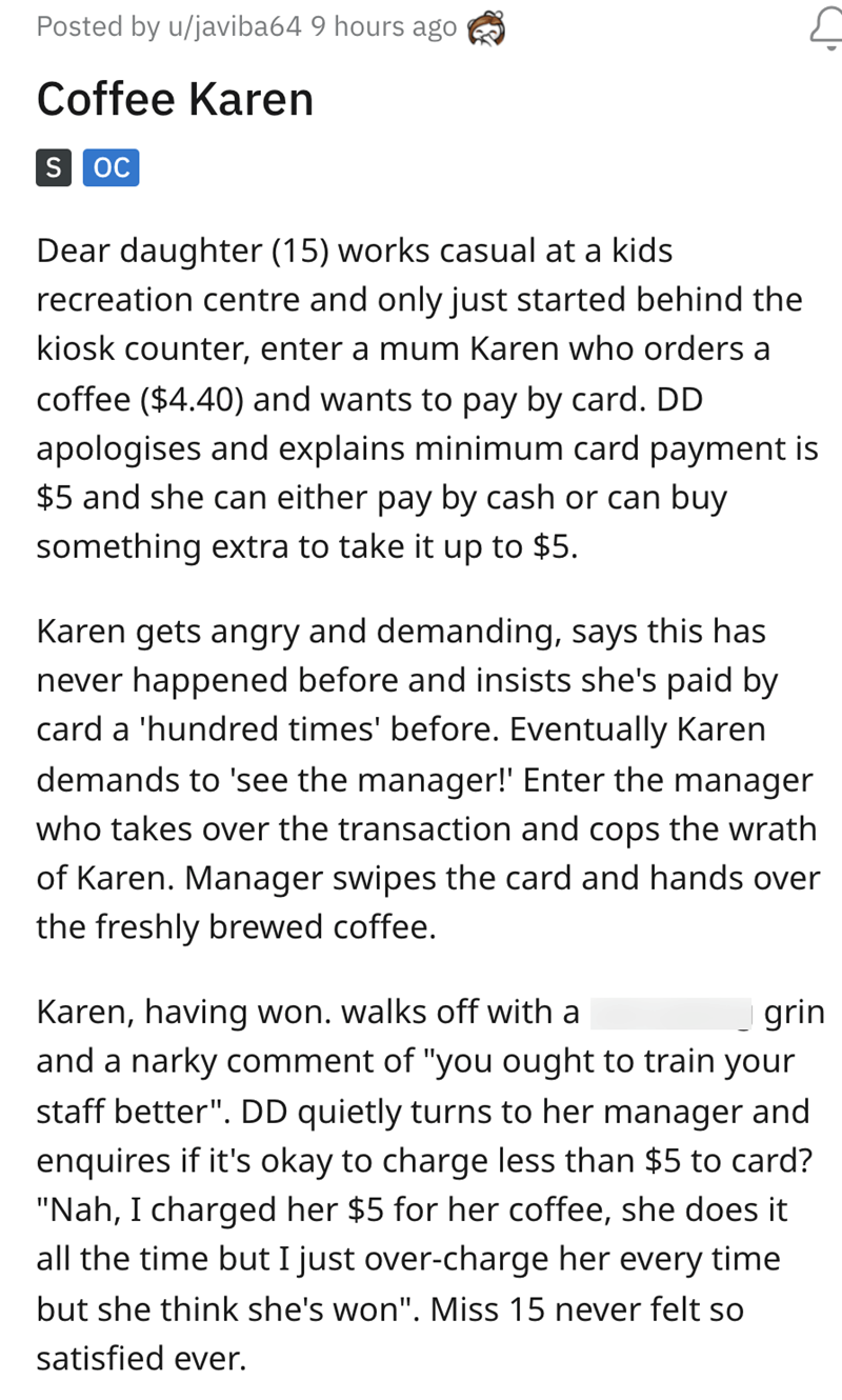 'I charged her $5': Karen won't pay minimum transaction amount, has been secretly paying it anyways