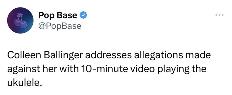 If you've been on Twitter at all in the past 24 hours, you've probably heard tell about a woman named Colleen Ballinger posting an apology video where she sang said apology accompanied by a ukulele. If you're a normal person, you probably have no idea who Colleen Ballinger is or why she'd apologize, so I'm going to tell you. Colleen is a YouTuber better known for her comedy persona, Miranda Sings. She was recently accused of sending messages of a sexual nature in group chats with underaged fans. Last night, she posted her long-awaited apology for this, and the Internet had an absolute field day with the cringe nature of her video.