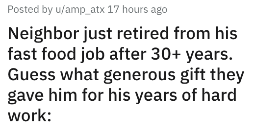 '[They] gave him a gift card for 30+ years of loyalty': Fast food employee celebrates retirement; gets 'rewarded' by corporate with a pathetic gift card