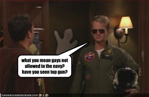 what you mean gays not allowed in the navy? have you seen top gun?