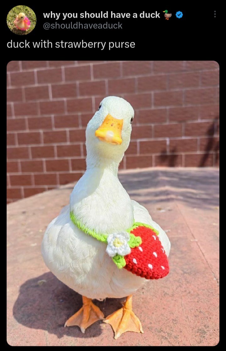 Although that purse is entirely too small for us, we would definitely take one! Do you think they have any other fruits for sale? We would love a peach one, and we also think the duck would like one!