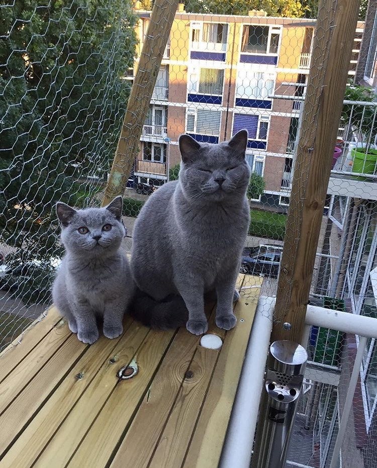 This cat and kitten duo has their very own specialized lookout platform for hooman and car-watching. It used to be for bird-watching too, but the birds have since wised-up, after some of them attempted to land on top of the mesh and got the fright of their lives.
