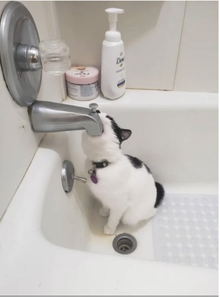 If this picture doesn't sum up what it's like to have a cat, we're not sure what does. Don't worry, we can wait until you're done drinking to continue with our shower - it's not like we were in the middle of doing something.