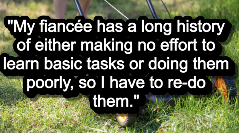 'No effort to learn basic tasks': Dude calls out his fiancée's weaponized incompetence and refusal to correctly do certain tasks