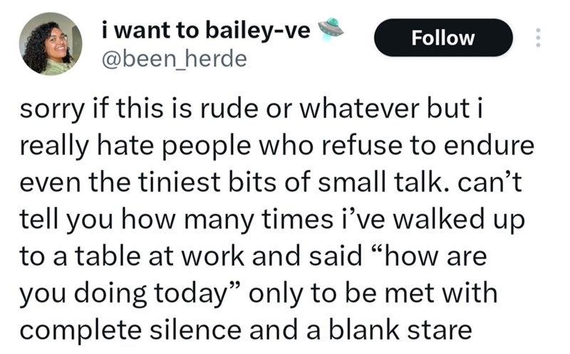 Server Complains About Customers Who Won't Converse With Her, Sparks Debate on Restaurant Manners