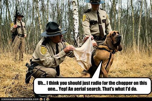Uh... I think you should just radio for the chopper on this one... Yep! An aerial search. That's what I'd do.