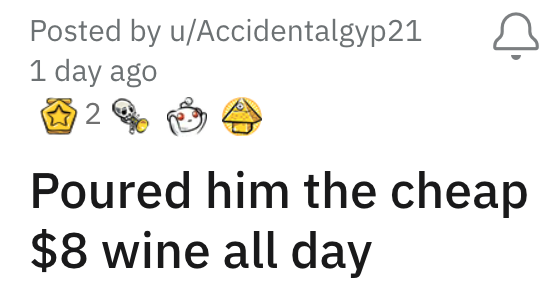 'I poured him the cheap $8 wine... the rest of the day': Barman gets petty payback against a guest after he takes 'open bar' way too literally and climbs behind the bar to steal drinks