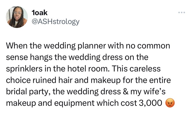 Incompetent Wedding Planner Hangs Dress on Hotel Sprinklers, Ruining the Wedding Dress and the Bridal Parties Hair And Makeup
