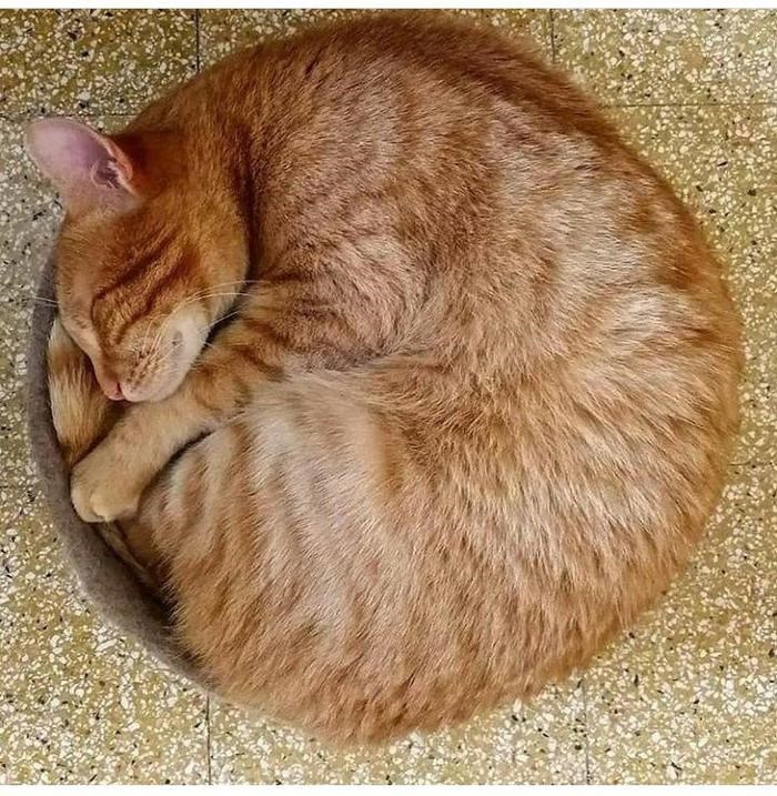 This cat is so purrfectly round, how can it not make you happy? It brings us a quiet joy just looking at it, maybe because it's so satisfying, or perhaps because he looks so comfortable like that. Whatever the reason, we love it!