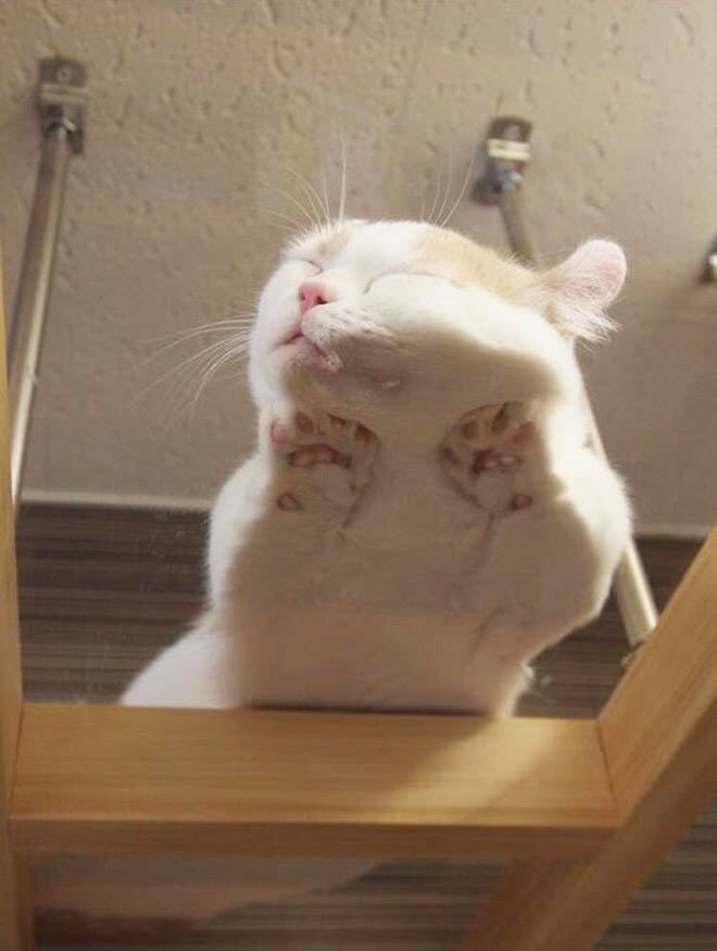 So squishy! It looks like an adorable marshmallow that we just want to snack on all day. Good thing that it has all that fluff too, or else it wouldn't be so comfortable laying on that glass. But then again, cats can lay on piles of Legos and be fine, so maybe they're just weird.