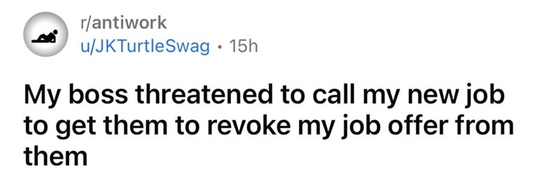 Power-Tripping Boss Threatens to Tell Employee's New Boss to Revoke His Job Offer