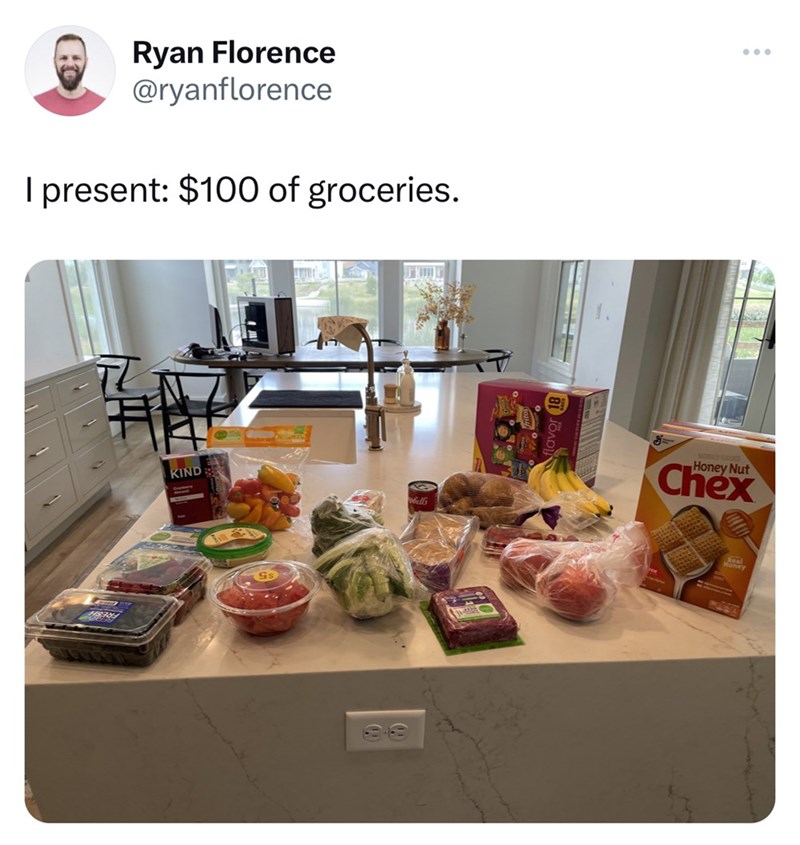 Dude Spends $100 on Paltry Amount of Groceries, Gets Roasted For Buying Pre-Cut Fruit and Name Brand Cereal