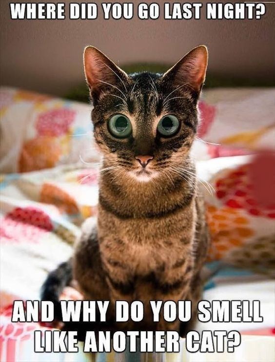 Anyone else's cat turn into a purrfectly aww-dorable feline detective once you return home from visiting a friend who has a cat? It's like they become a purr-sonal investigator regarding anything with whiskers!