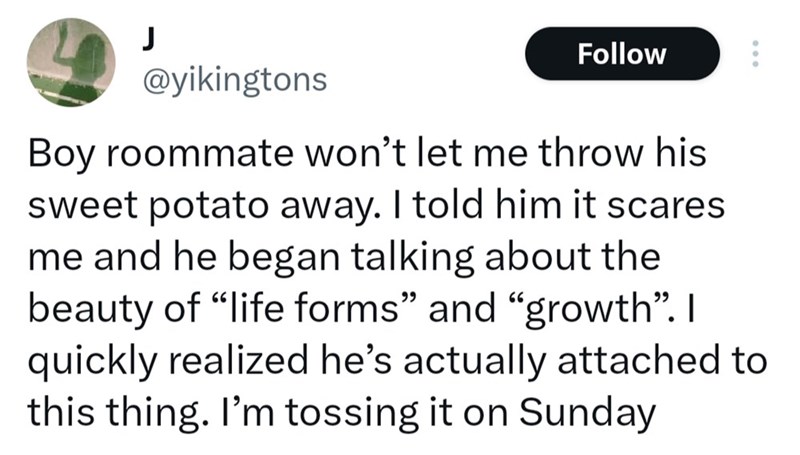 Irate Woman Insists on Throwing Out Roommate's Beloved Sprouting Potato, Twitter Jumps to its Defense