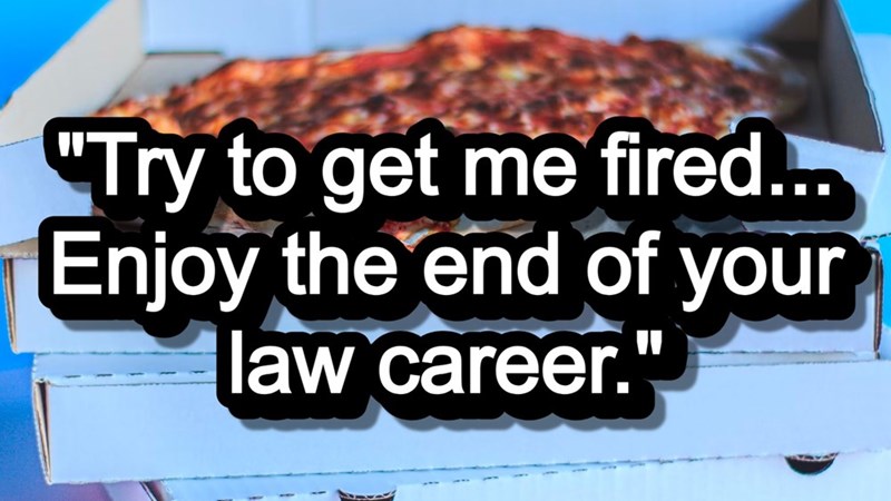 'Enjoy the end of your law career': College student pizza guy ends law student boss's career before it starts