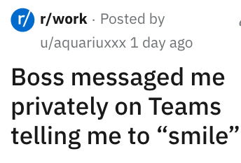 ‘[I'll] smile for a raise': Boss messages his employee privately asking her to ‘smile more’ in their weekly teams video call; she refuses and hilarity ensues in the comments