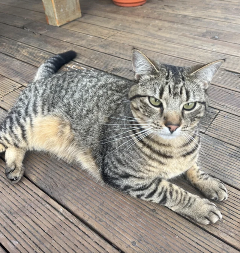 "Met this fine gentleman on a hike. Apparently, he was chilling on a towel. 10/10 Responded to pspsps and came for skritches."