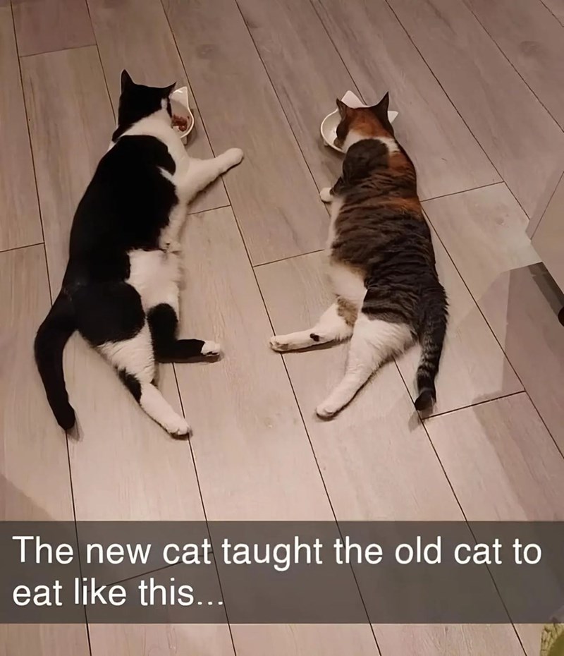 Now this has to be the most literal embodiment of Cats and Chill. These fellas are living like feline royalty. All they are missing is a plush cushion to lie on and perhaps a servant to feed them and they would be the real deal. Also how epic is it that the old cat actually caught on to this trick. Great minds think alike apparently.