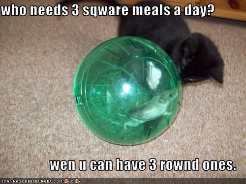 who needs 3 sqware meals a day? wen u can have 3 rownd ones.