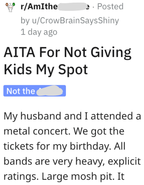 'He tried to fight... [so] I got security involved': Entitled parents at a metal concert bully the crowd into letting their small children squeeze to the front; woman puts the dad in his place