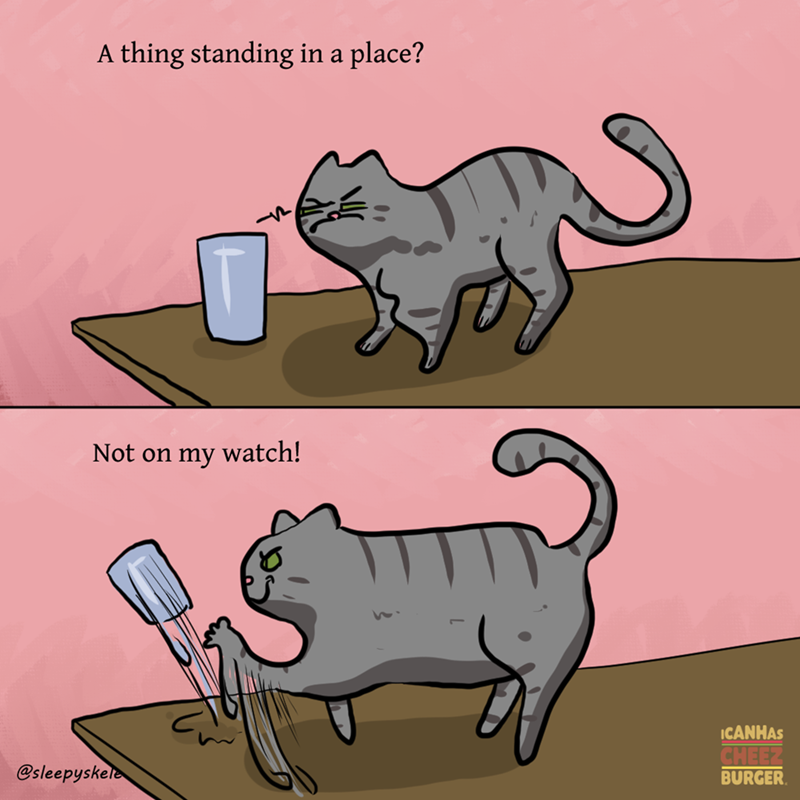 Really, the thing that was standing in place was clearly provoking the cat, and this is totally somehow our fault and not our cat's fault. Or at least that's what our cats clearly think when we catch them doing this red-handed, and they show exactly zero shame about their activities.