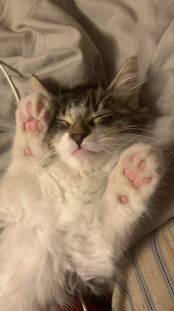 Come on, how can you not look at this picture and go weak in the knees? We're absolutely in love with this cute kitten and their tiny beans, and we've never even met them! We just want to give those beans 1,000 tiny kisses and tell that kitty how much we love them.