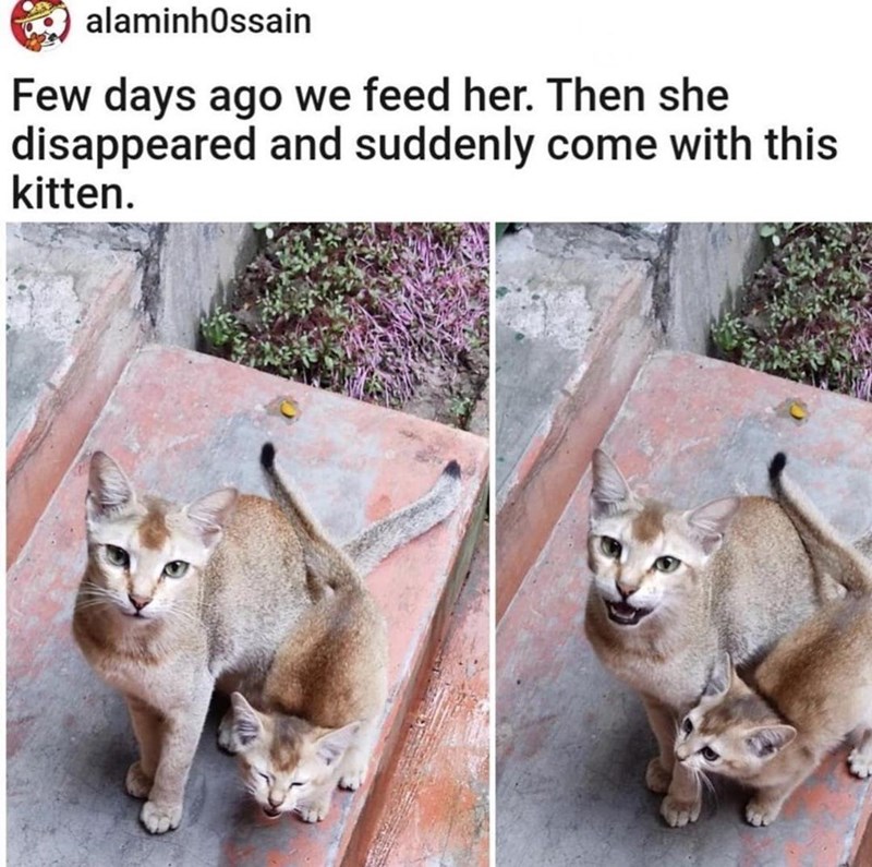 All it takes for some cats is one moment - just one moment of love and compassion - from a human, and that's it. You get chosen. This momma has clearly decided that these humans were her humans, and if you think that they have any choice in the matter, you are wrong.