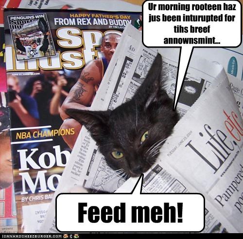 Ur morning rooteen haz jus been inturupted for tihs breef annownsmint...