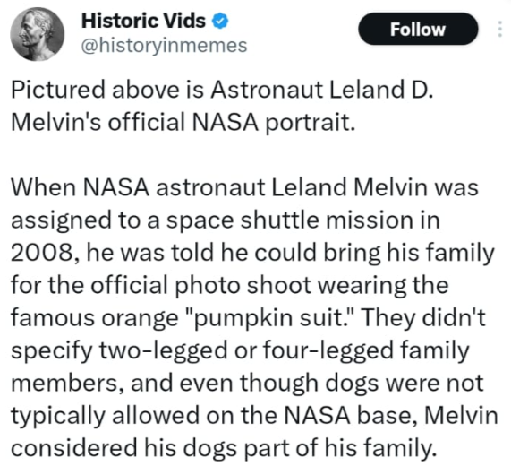 We swear, with every single sentence that we read of this twitter thread, we only fell in love more - both with Leland Melvin and with his dogs and even with this friend and the photographer. We have not read such a wholesome story in such a long time, and goodness, but we needed it.