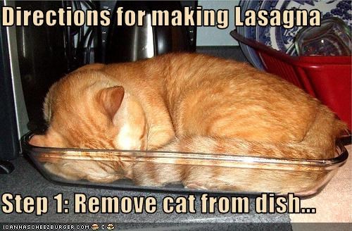 Directions for making Lasagna Step 1: Remove cat from dish...