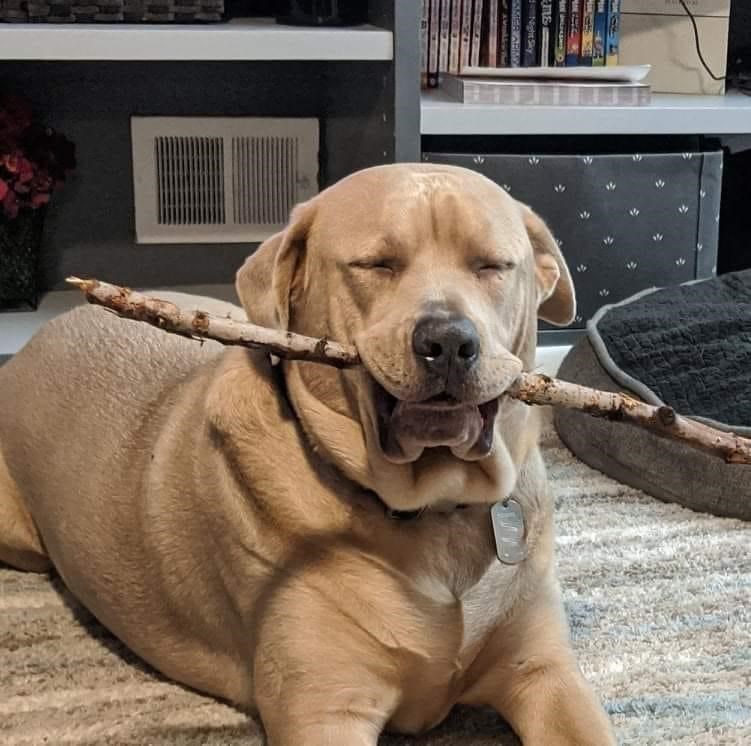 We hope one day to be as happy as this doggo is with his stick. We're not sure we've ever been that pleased with ourselves in our entire lives - this pupper is an inspiration for us to out and do more things that make us happy! What is the human equivalent of having a nice stick all to yourself?