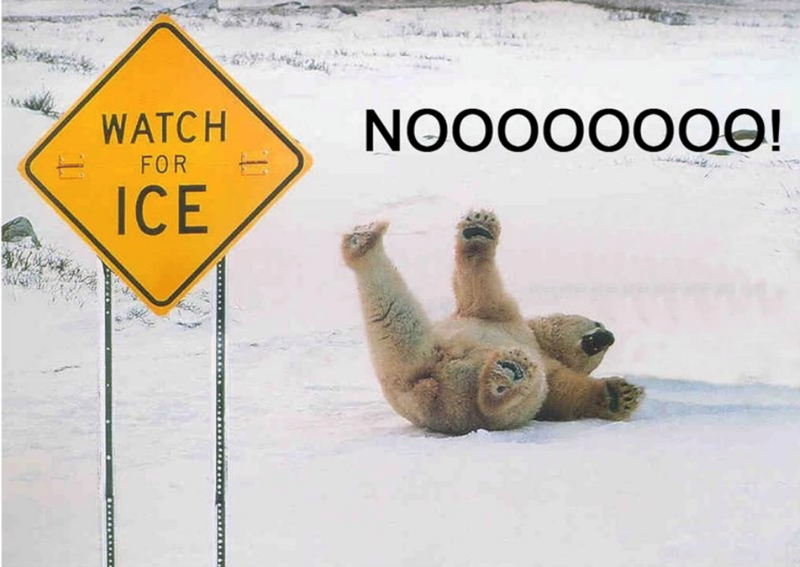 The irony of a polar bear slipping on ice is not getting past us. Even polar bears can be derpy, and something that big and adorable that is also derpy is just too much cuteness for us to handle. We really want one as a pet, even though we know it's not allowed. But think of how fluffy it would be. Just imagine.