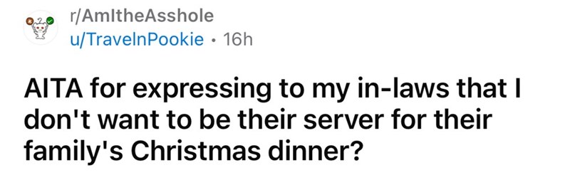 Inconsiderate Family Asks Daughter-In-Law to Be Their Server for Christmas Dinner