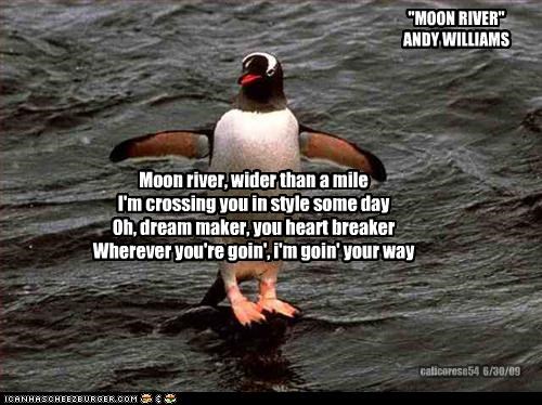 Moon river, wider than a mile I'm crossing you in style some day Oh, dream maker, you heart breaker Wherever you're goin', i'm goin' your way