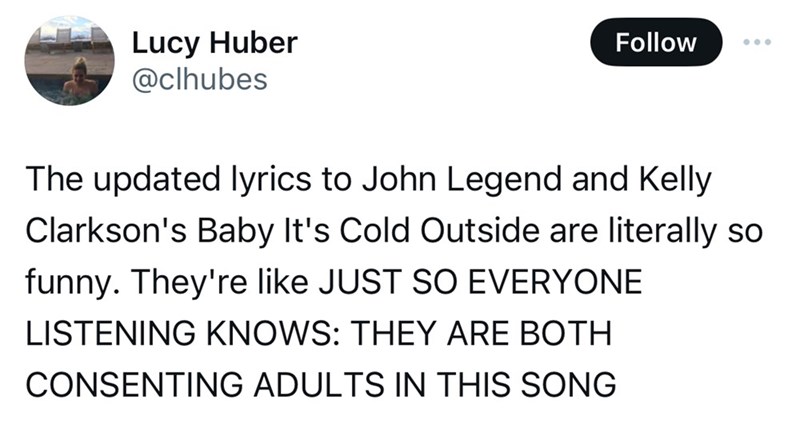 Commenters Roast Goofy Updated Lyrics to "Baby It's Cold Outside"