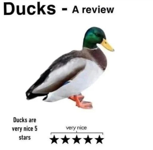 So before we waddled into today's list we wanted to give you a little appreciation for the quality that we are bringing to the table. As you can see by this comprehensive review, ducks have received a five star rating. They have also been categorised as very nice. This holds a lot of promise.