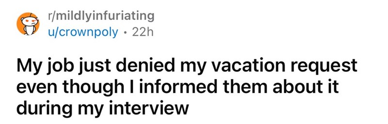 'They said it wouldn’t be a problem': Manager denies employees vacation request after it was approved during job interview