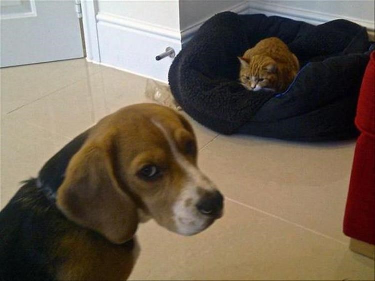 These 22 Cat-astrophic Takeovers Of Dog Beds Are Hilarious