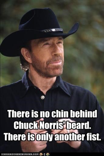 There is no chin behind Chuck Norris' beard. There is only another fist.