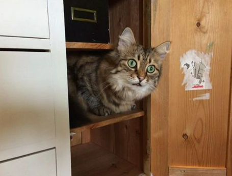 How absolutely charming is this awwdorable feline, peeking its head out of the cupboard? It seems all set for a delightful game of hide and seek. Count us in for the fun if we get the chance to spend time with this irresistibly cute and fluffy kitty.
