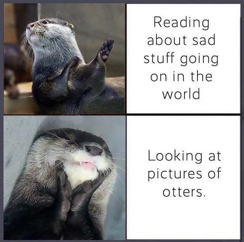 No bad vibes here, only otters! They're cute, they're fluffy, and they are supremely silly. We wish we were an otter, to be honest. No taxes, no work, just floating around in the water and cracking open shells on our bellies. Sounds relaxing!